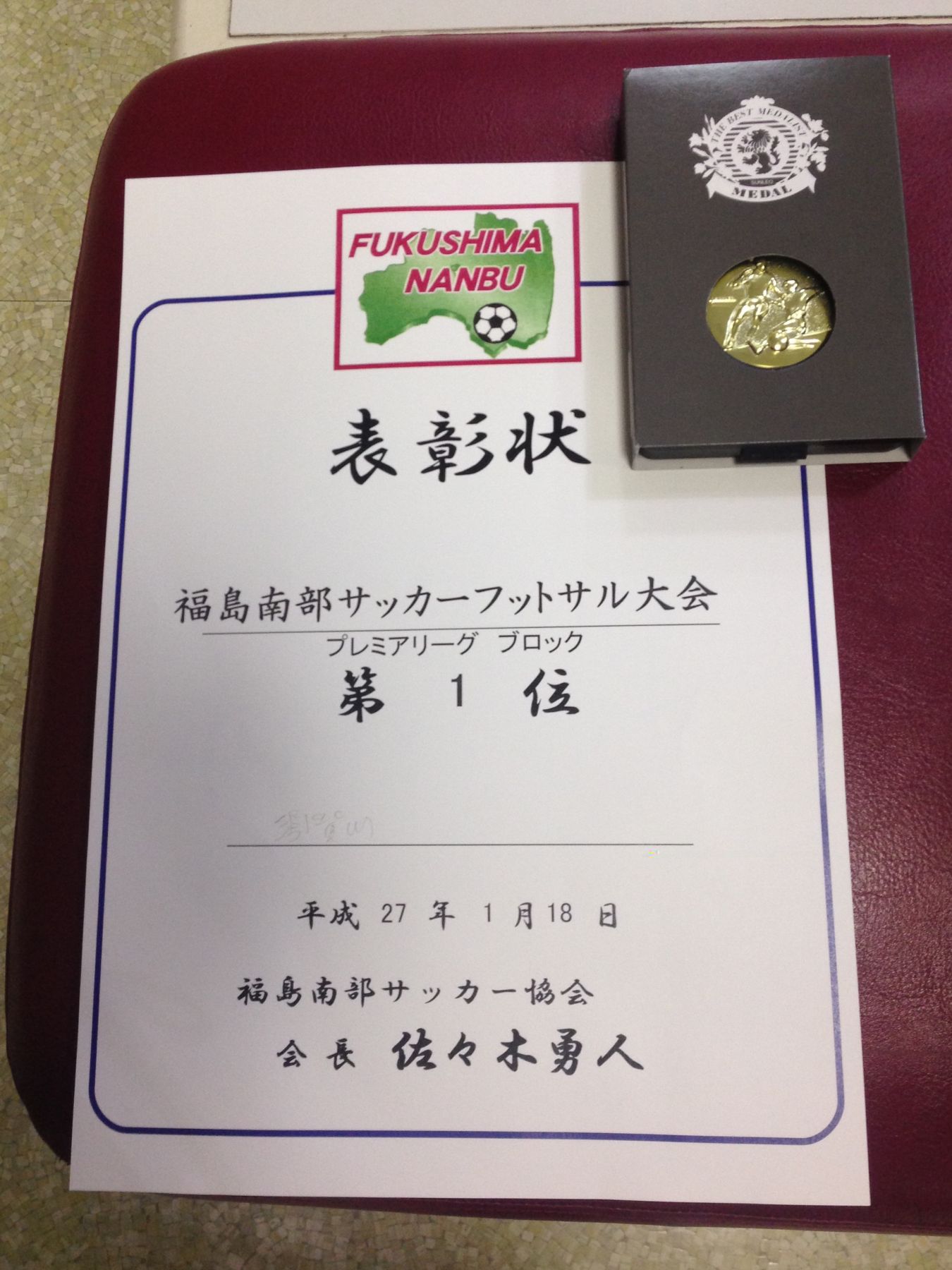 1月17・18日に白河中央体育館にて福島南部サッカーフットサル大会が行われました。初日はバモス福島さんに郡山カップ 県南予選に引き続き再戦するものの惜しくも敗戦。2位突破で翌日の決勝リーグ 2位グループへ進みました。決勝リーグでは浮き球からボレーシュートなどスーパープレーがあり成長が見れて取れましたが決定力が乏しかったと思います。来月の郡山カップ 福島県大会までまだまだ時間はあります。練習に励み少しでもレベルアップを計っていきましょう!福島南部サッカー大会優秀選手の表彰もありました。元キャプテンの関根黎君が見事表彰!おめでとう!保護者の皆さんも寒い中、お疲れ様でした。予選リーグ A組VS 白河FC A 1-0 勝ちVS 東舘SSS 4-1 勝ちVS 鏡石FCS 1-0 勝ちVS バモス福島フットサルクラブ 0-1 負け決勝リーグ 2位グループVS 白河FC B 2-2 分けVS 富田東SSS 3-1 勝ちVS 天栄SSS 4-2 勝ち -